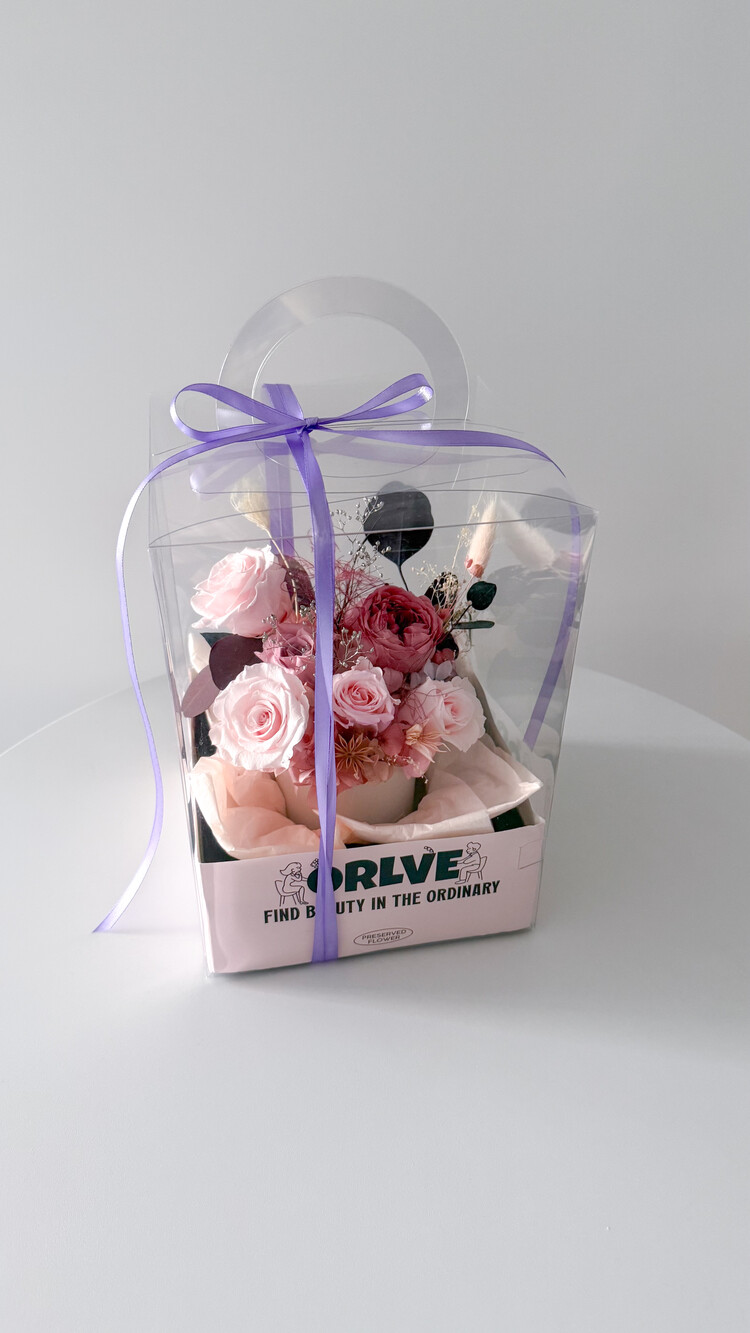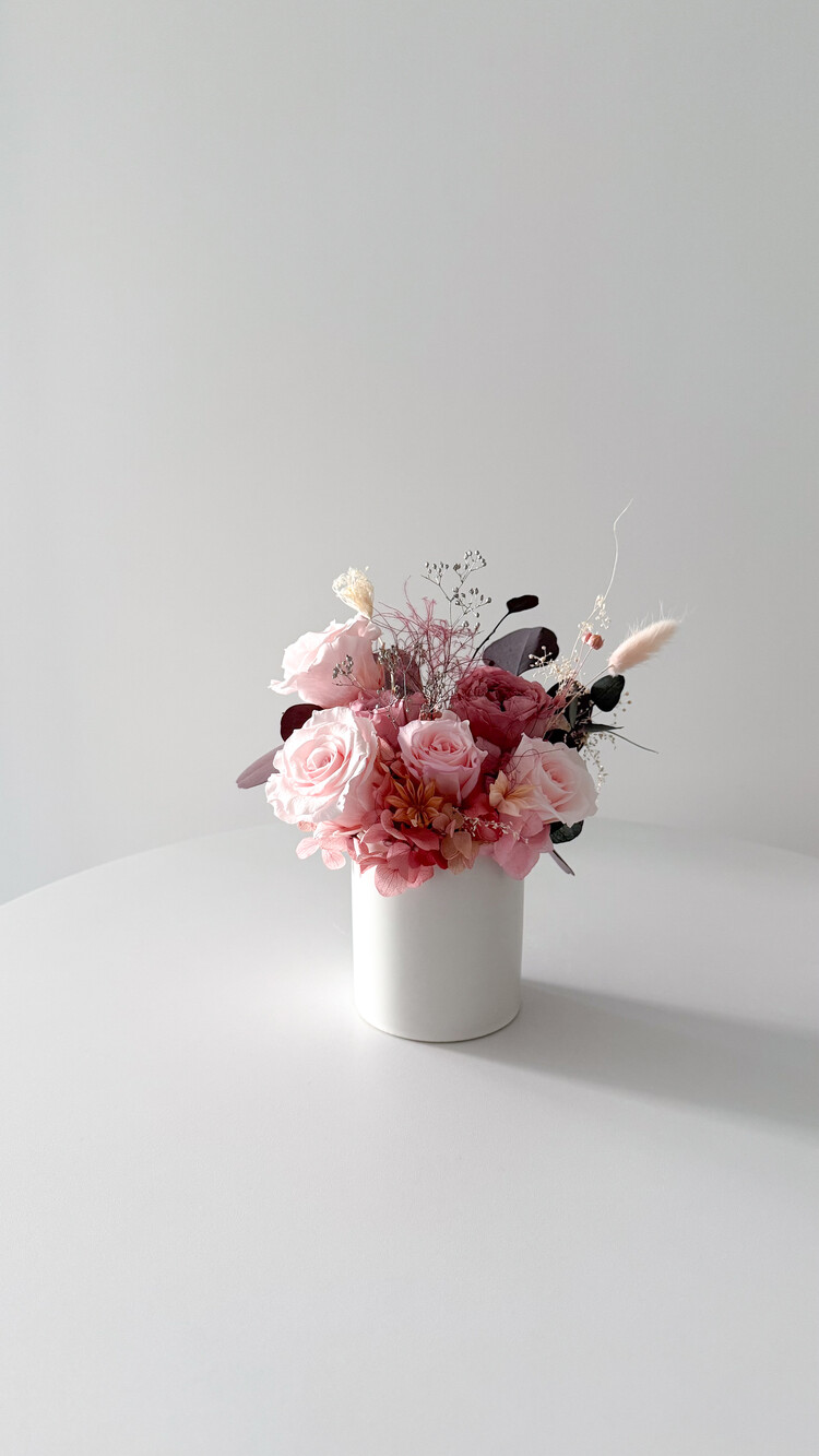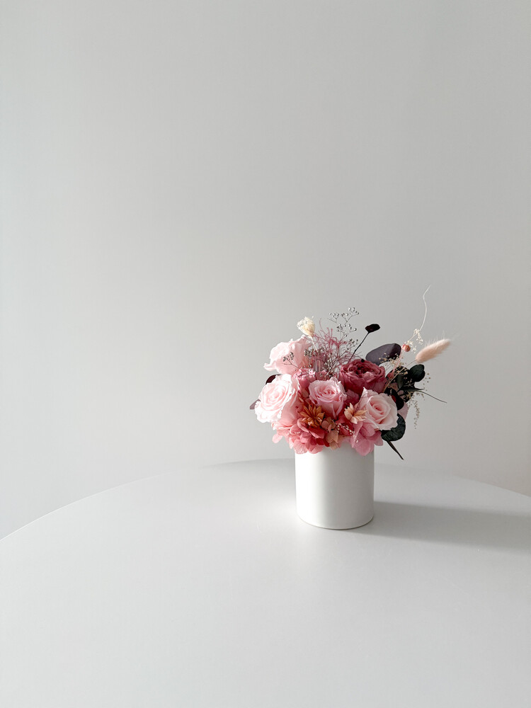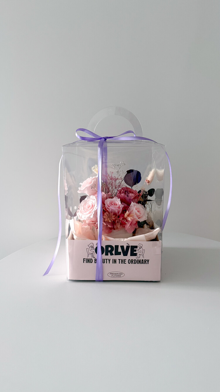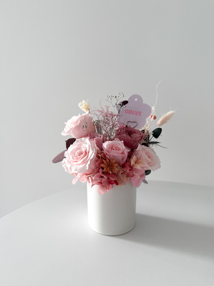 모든 소재는 프리저브드 플라워로 제작되어, 물 없이도 오랫동안 지금의 모습 그대로 간직할 수 있어요.