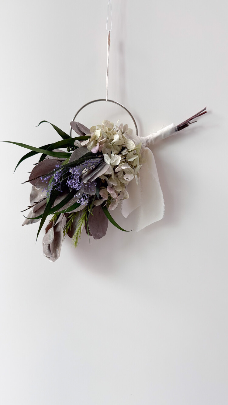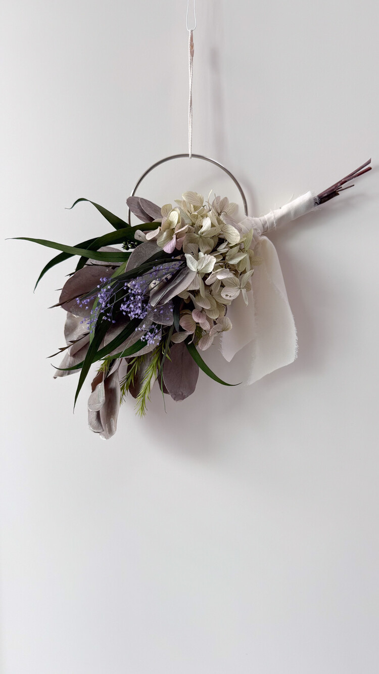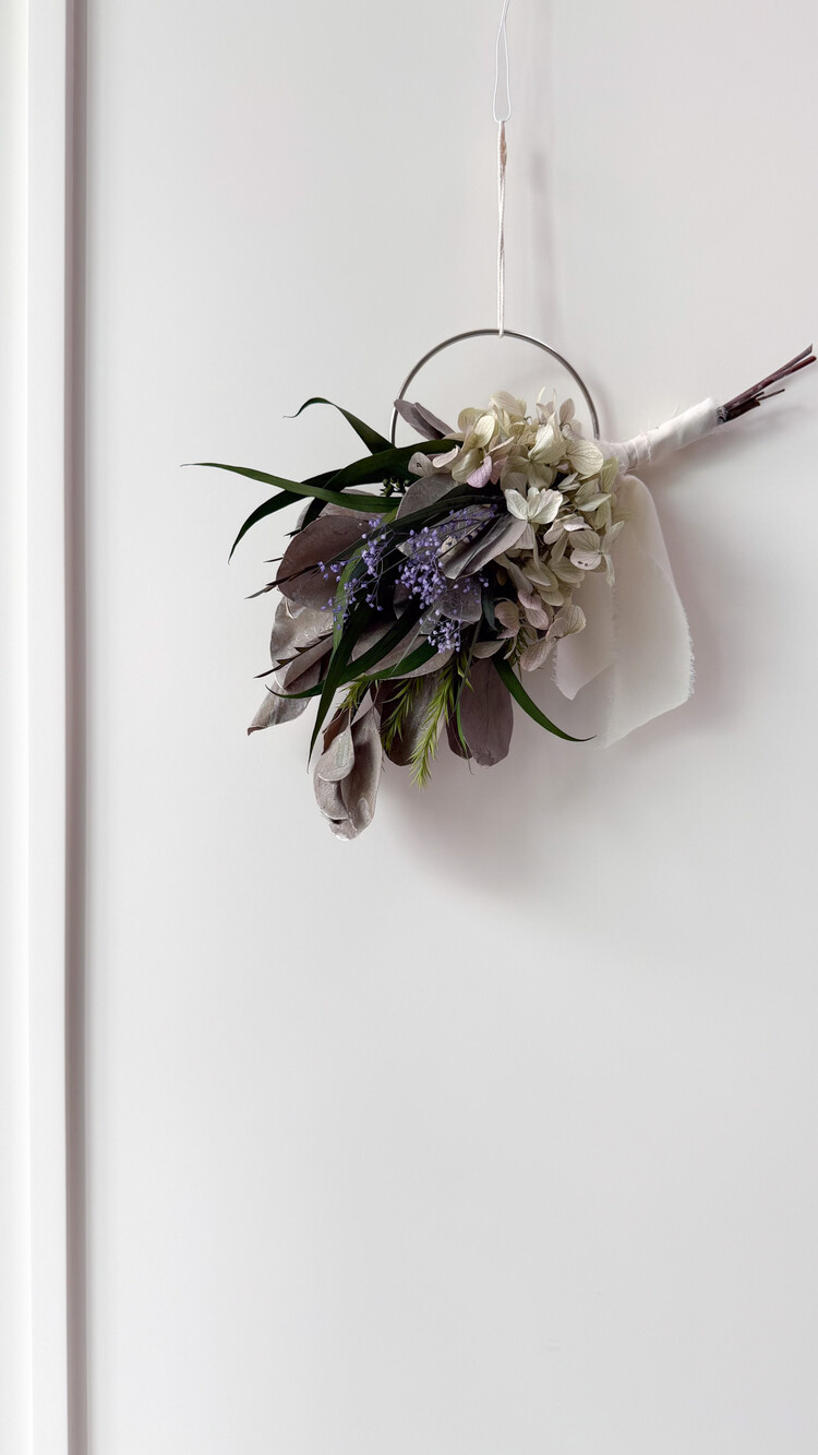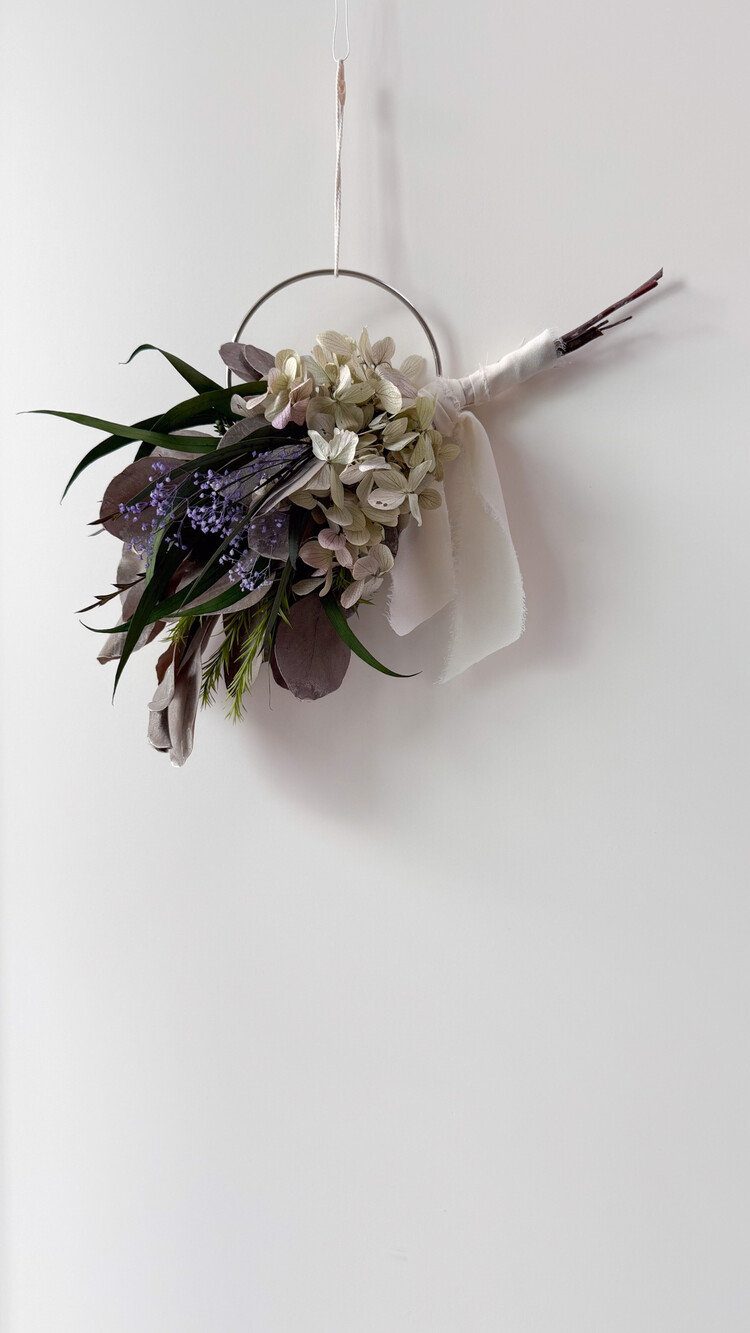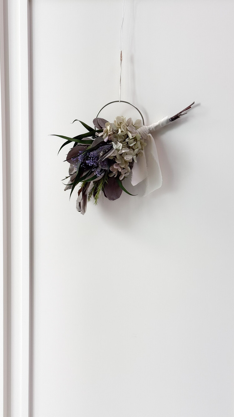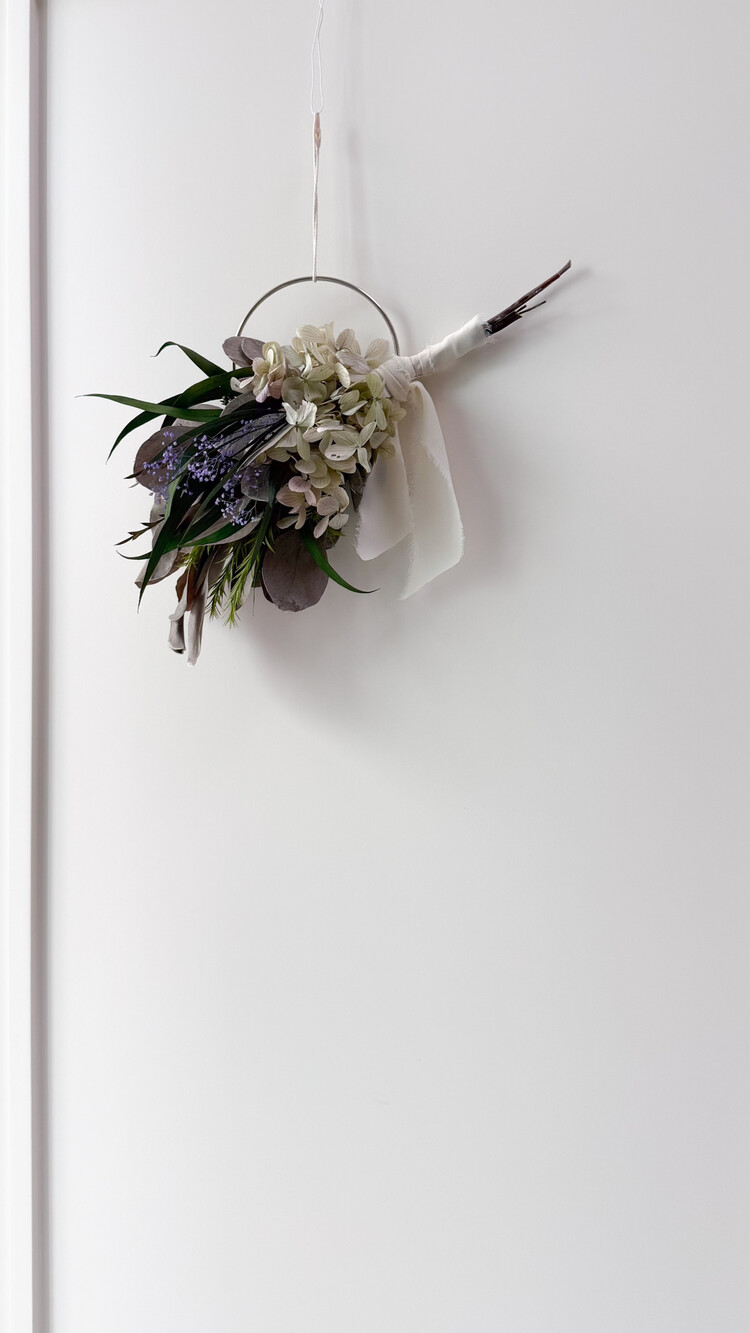 오레가노 퍼플 프리저브드 수국과 포플러스 그레이화이트 소재가 어우러져 내추럴한 무드를 담은 리스입니다.심플한 벽면이나 현관문, 작은 공간에 걸어두시면 공간에 자연스럽고 감각적인 분위기를 더해줍니다. 시들지 않는 프리저브드 소재로 오래도록 아름답게 즐기실 수 있습니다.