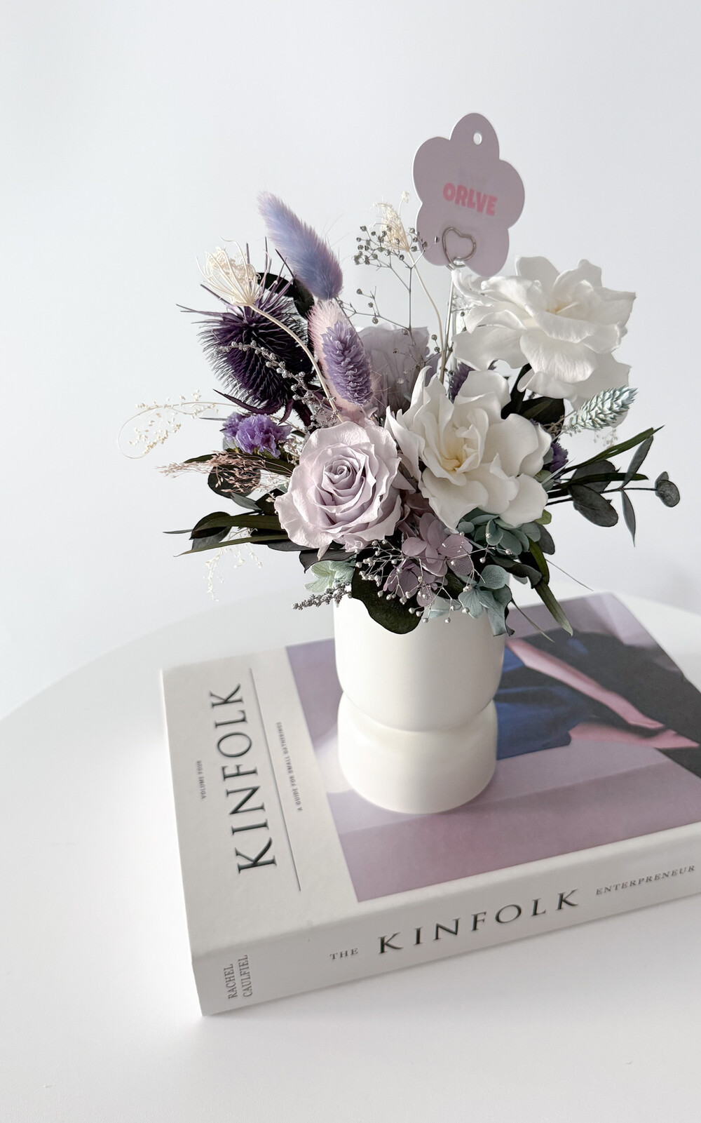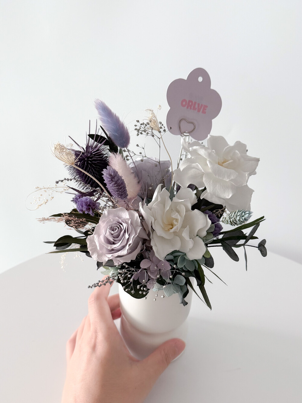 모든 소재는 생화가 아닌 프리저브드 플라워로 제작되어, 물 없이도 지금의 아름다움을 오랫동안 유지할 수 있어요.