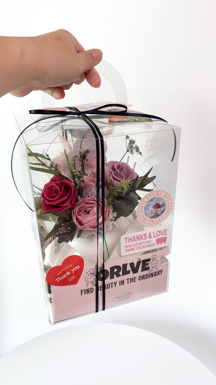 받아보시는 분께 바로 선물하실 수 있도록 손잡이 있는 투명 케이스 + 리본 포장+안내지 동봉되어 발송됩니다.