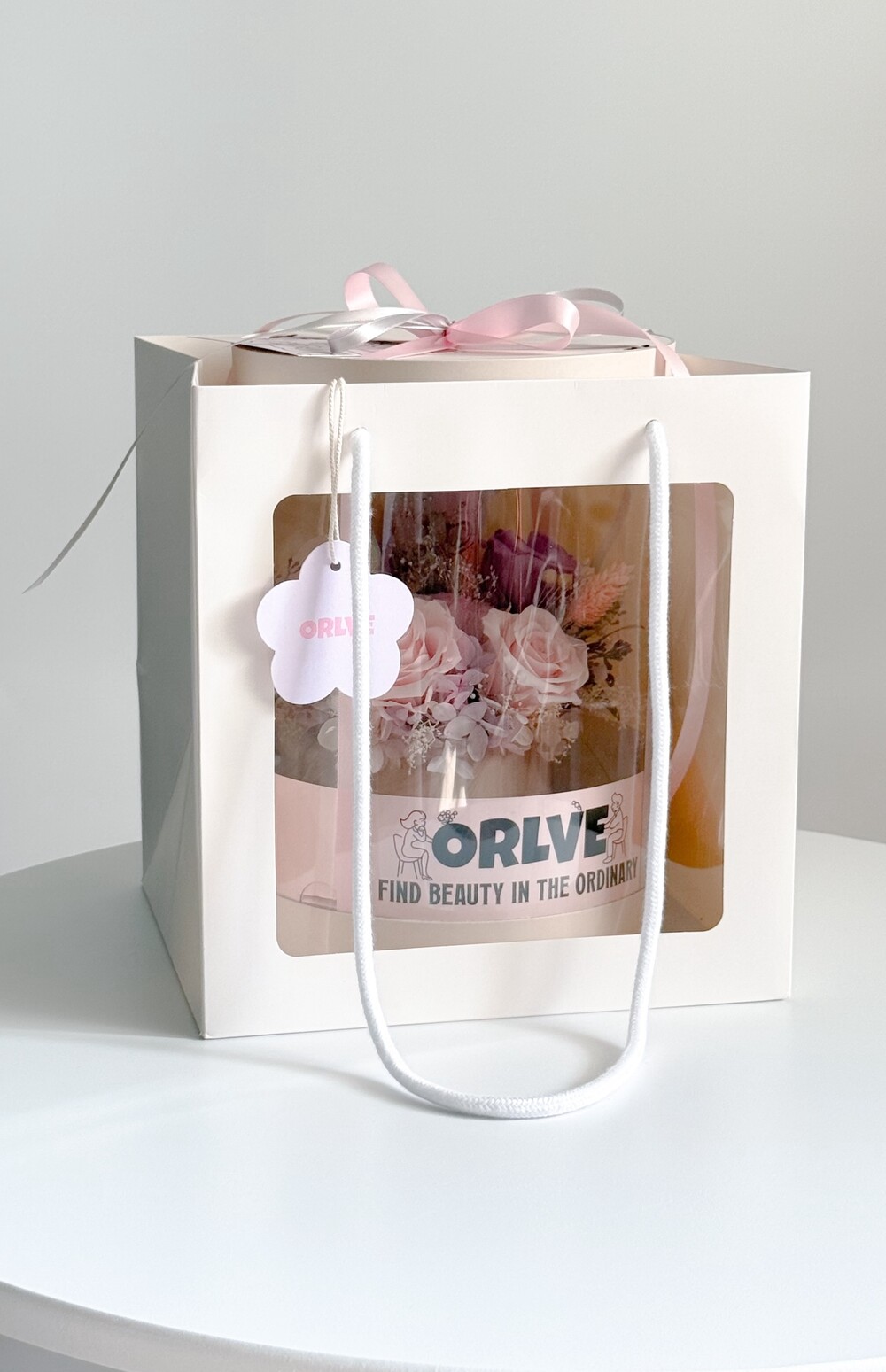 부드러운 브라이덜 핑크와 라벤더 핑크, 그리고 순백의 화이트가 어우러진 로맨틱한 무드의 플라워박스입니다.